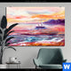 Alu-Dibond Bild | Gemälde mit Boot im Sonnenuntergang | Hochformat