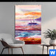 Alu-Dibond Bild | Gemälde mit Boot im Sonnenuntergang | Querformat