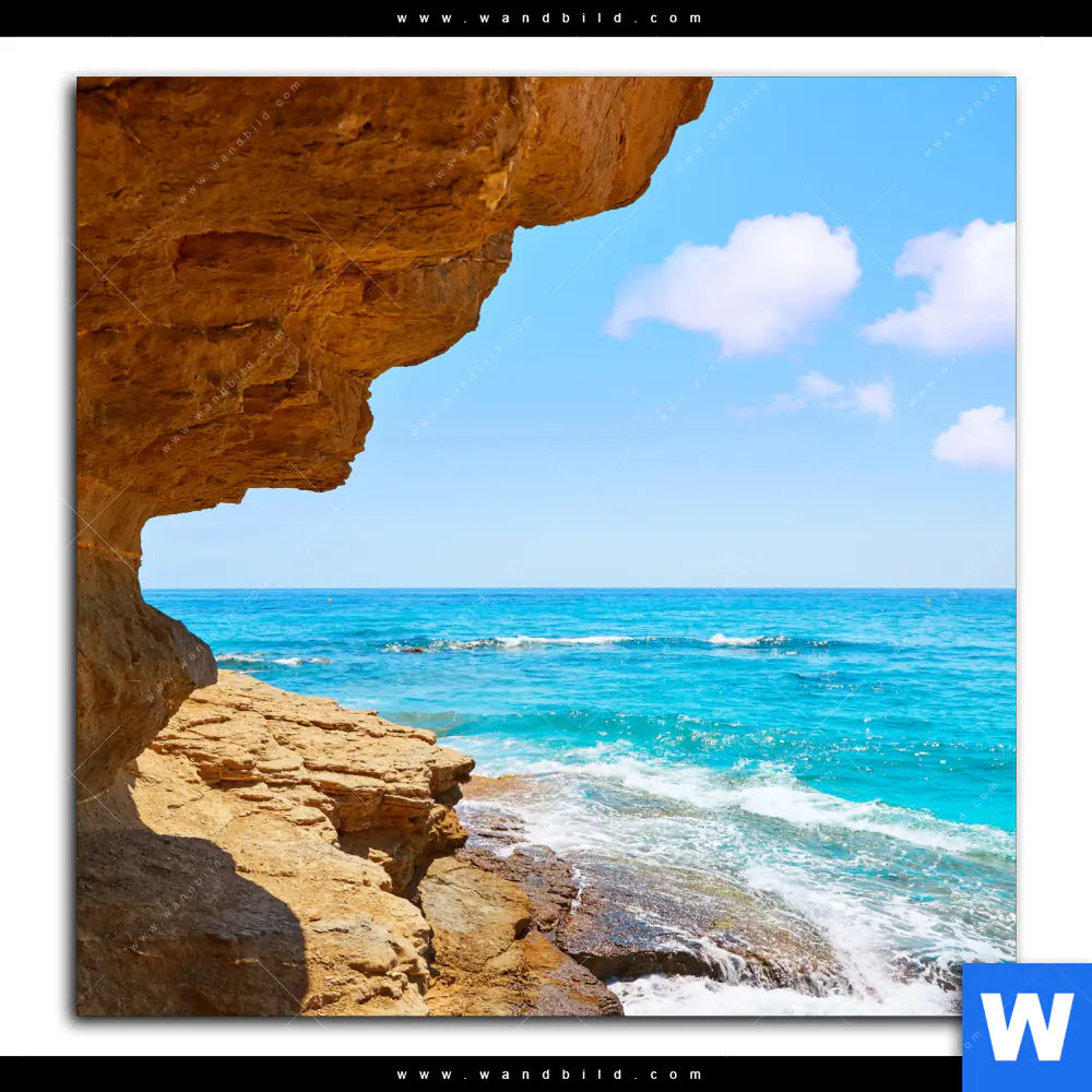 Alu-Dibond Bild | Wellenrauschen und Felsenklippe | Quadrat