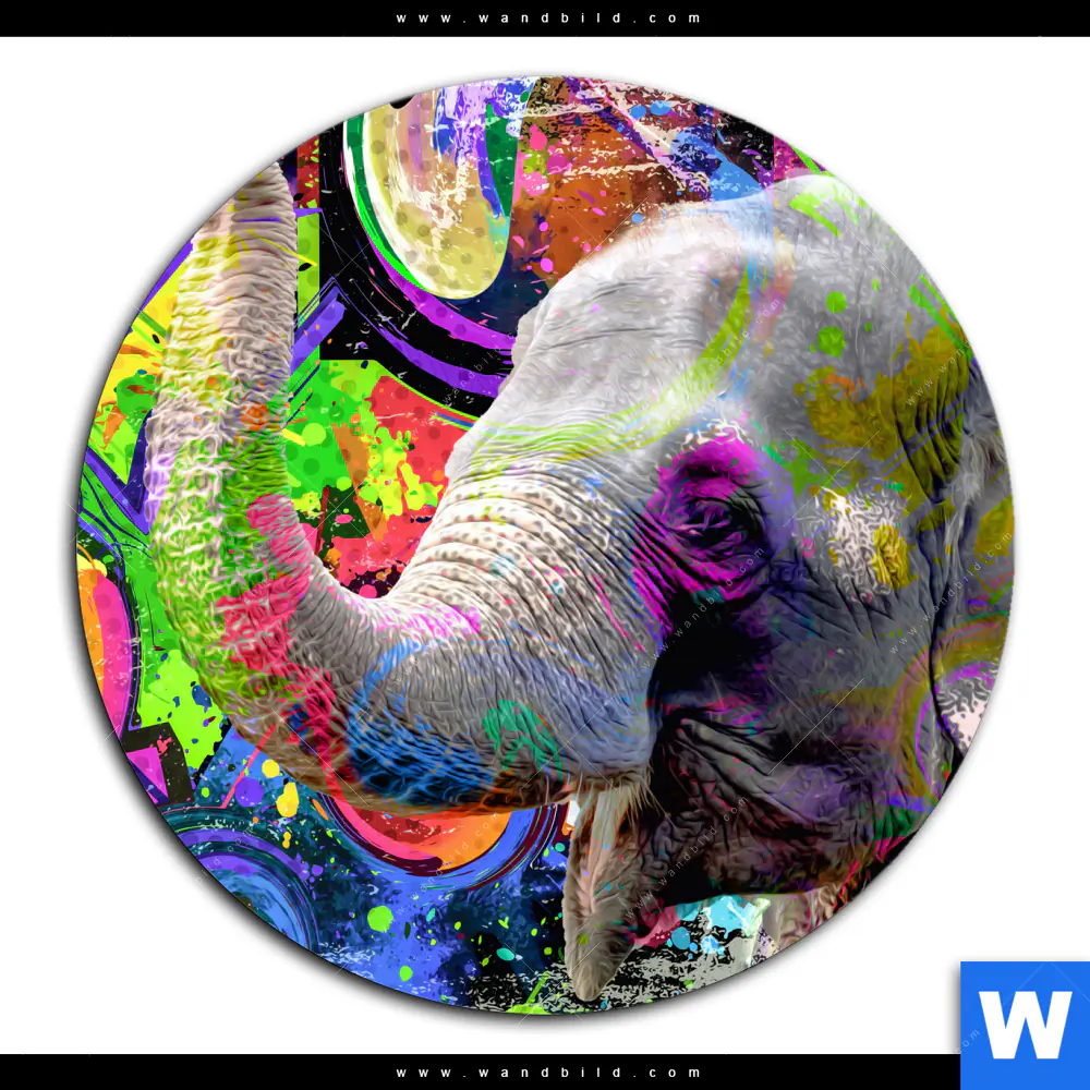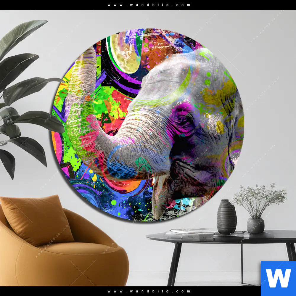 Alu-Dibond Bild | Moderner bunter Elefant No. 2 | Rund