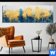 Alu-Dibond Bild | Abstrakter Wald - Blau & Gold | Querformat