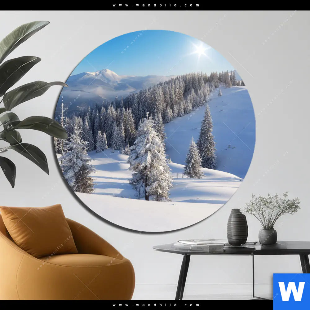 Alu-Dibond Bild | Berge und Wälder in Schnee | Rund
