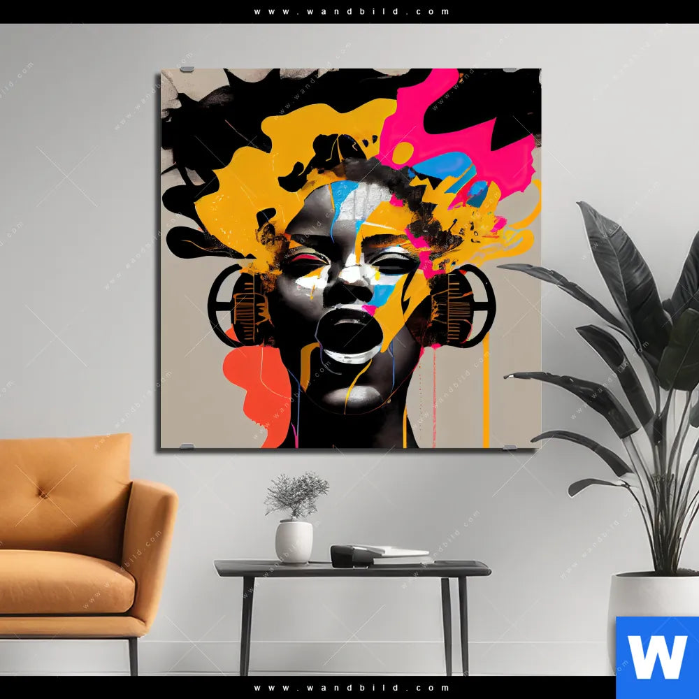 Alu-Dibond Bild | Frau mit Kopfhörern | Quadrat