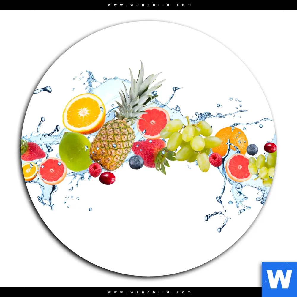 Alu-Dibond Bild | Früchte in Spritzwasser | Rund