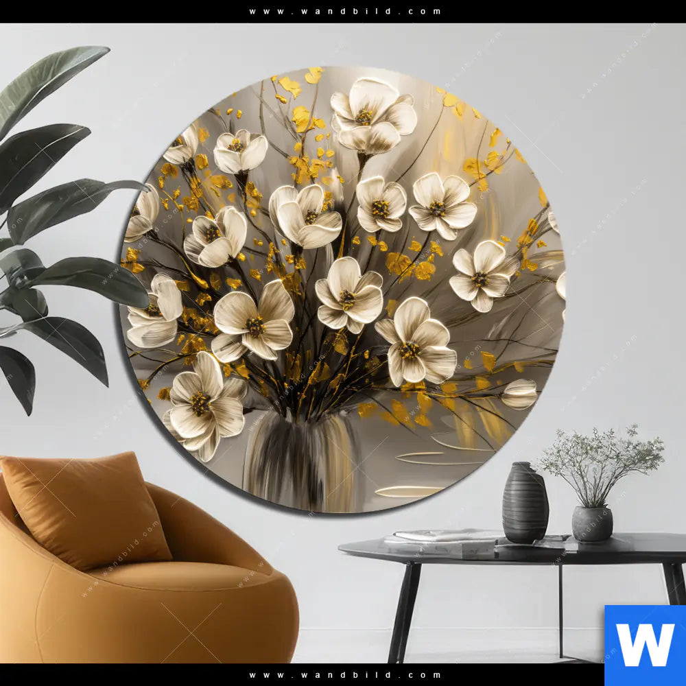 Alu-Dibond Bild | Goldene Blütenpoesie | Rund