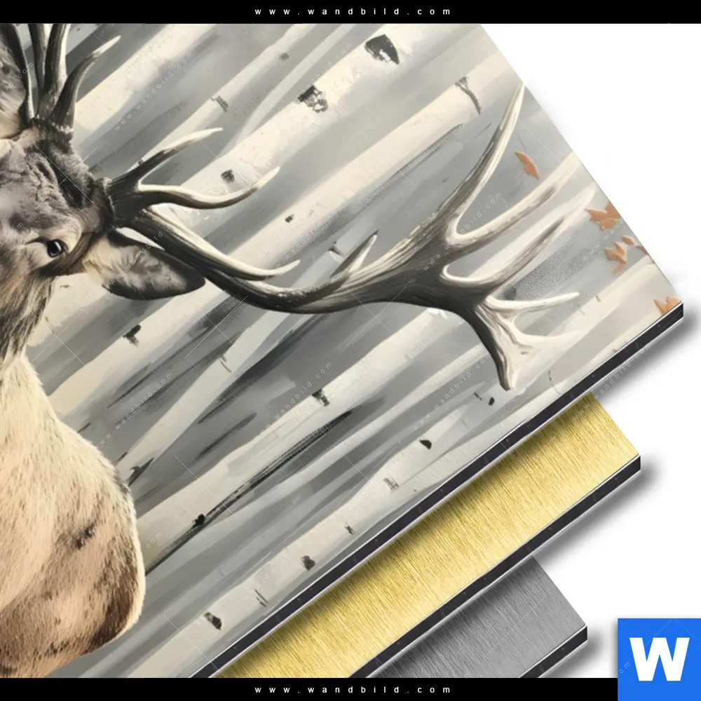 Alu-Dibond Bild | Hirsch im Birkenwald | Hochformat