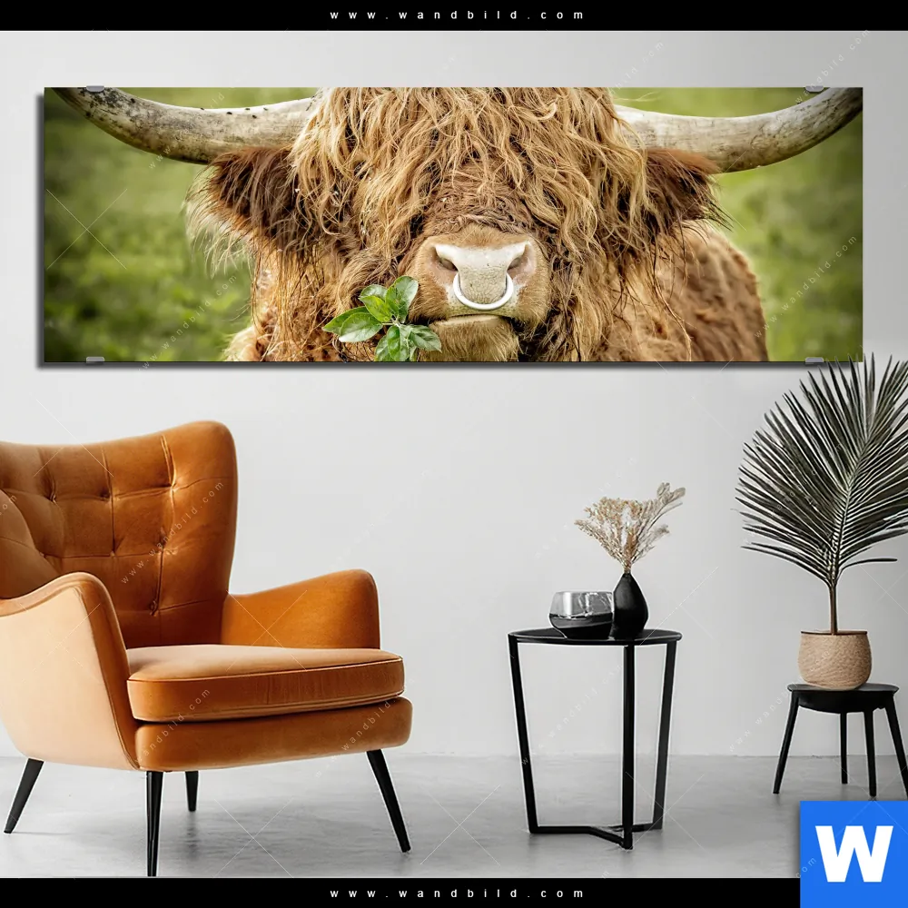 Alu-Dibond Bild | Hochland-Rind mit Nasenring | Panorama