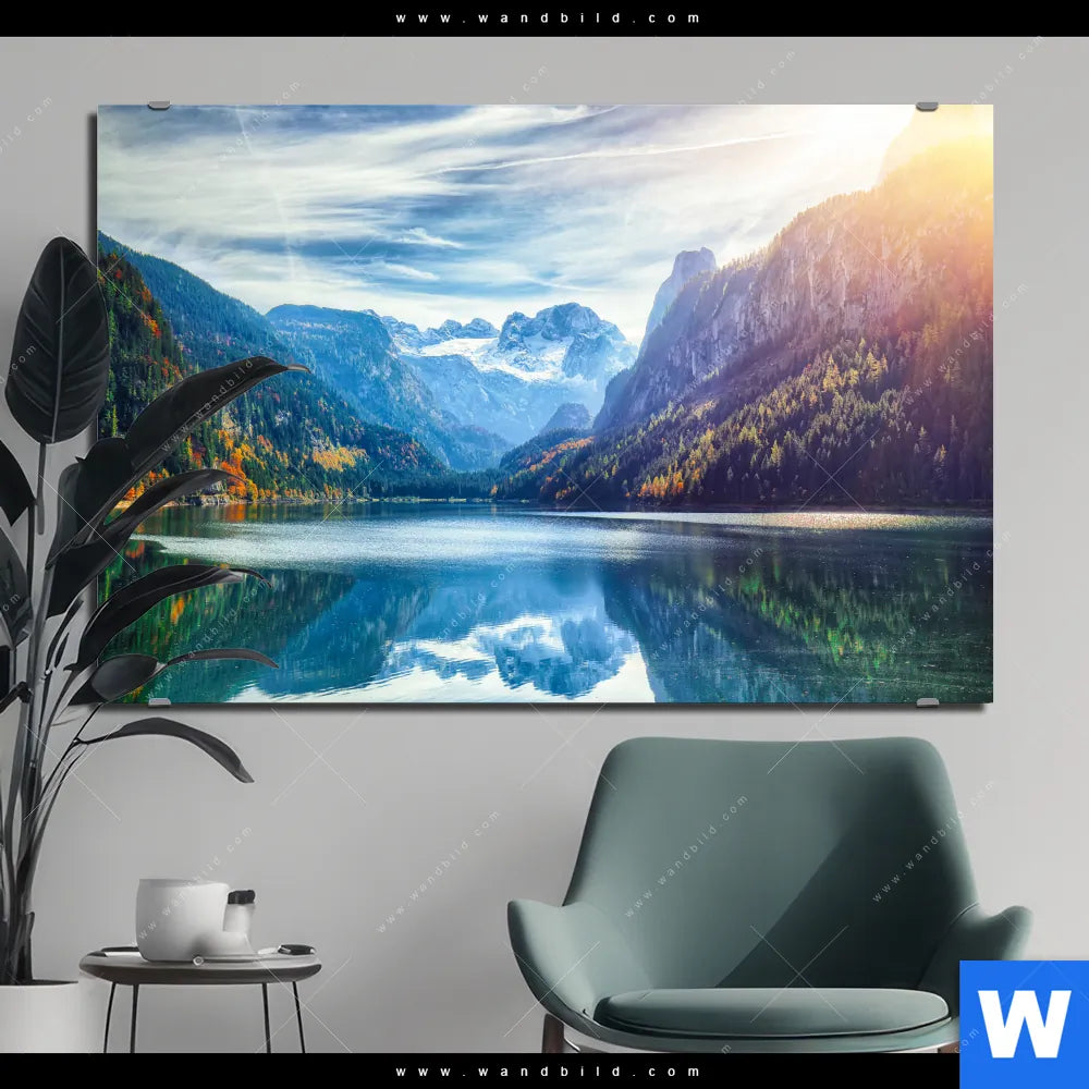 Alu-Dibond Bild | Idyllischer Bergsee im Gebirge | Querformat