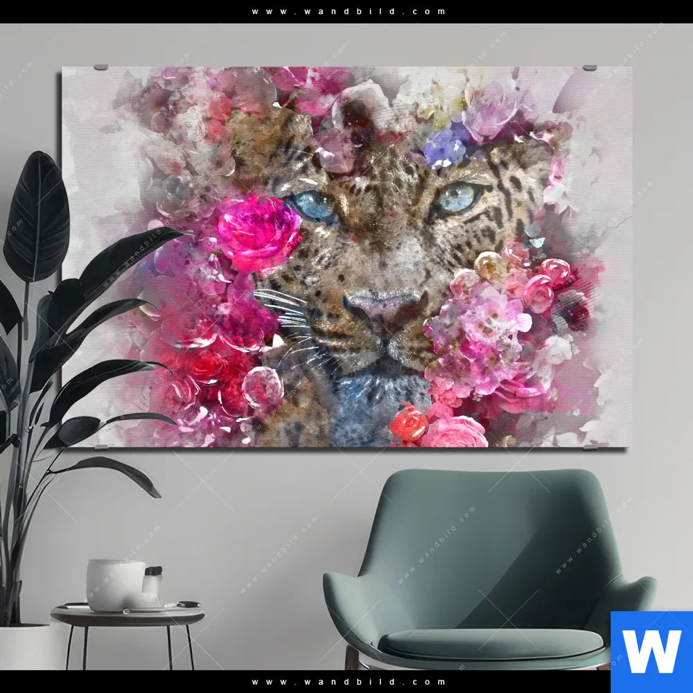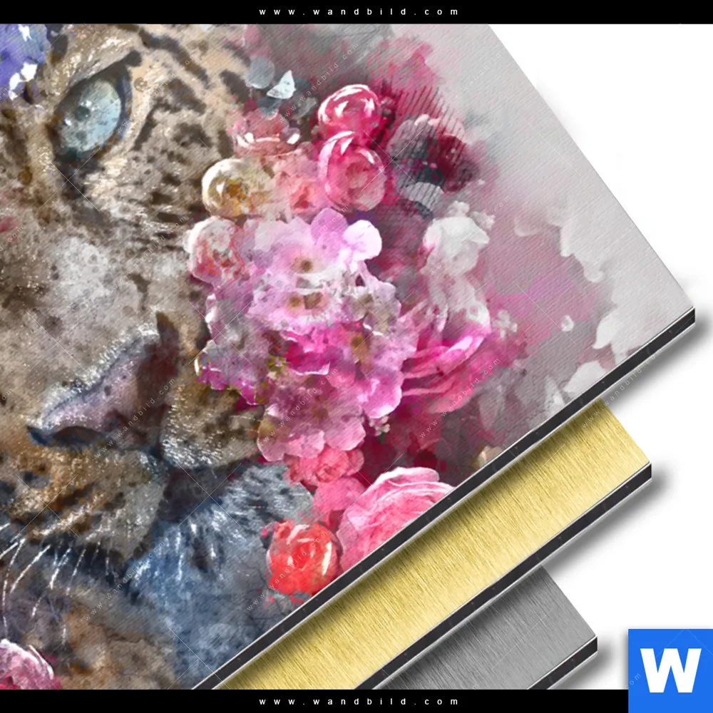 Alu-Dibond Bild | Leopard & Blumen | Querformat