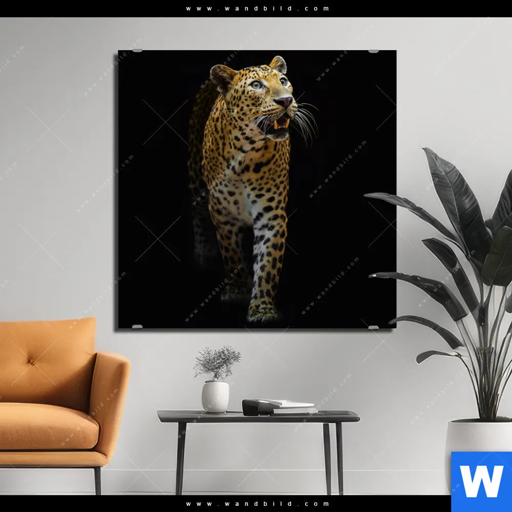 Alu-Dibond Bild | Leopard in der Dunkelheit | Quadrat