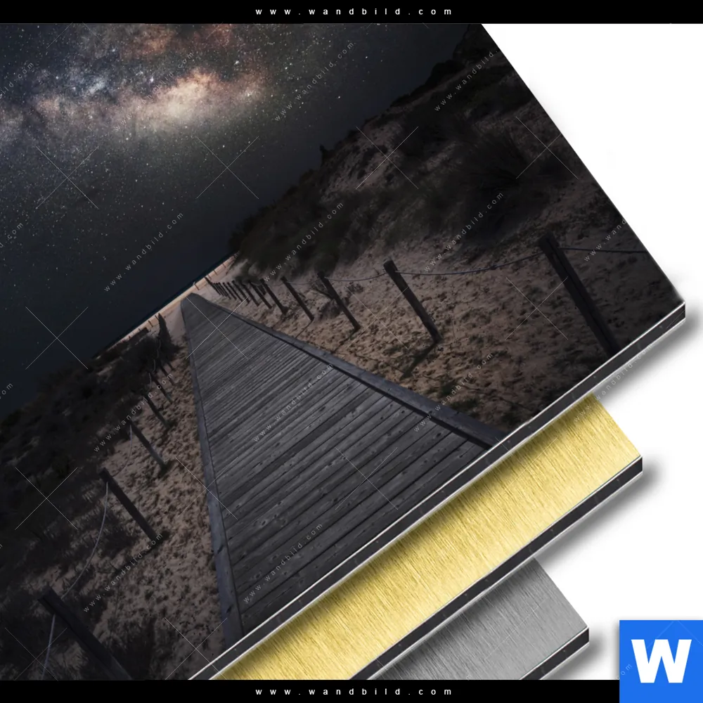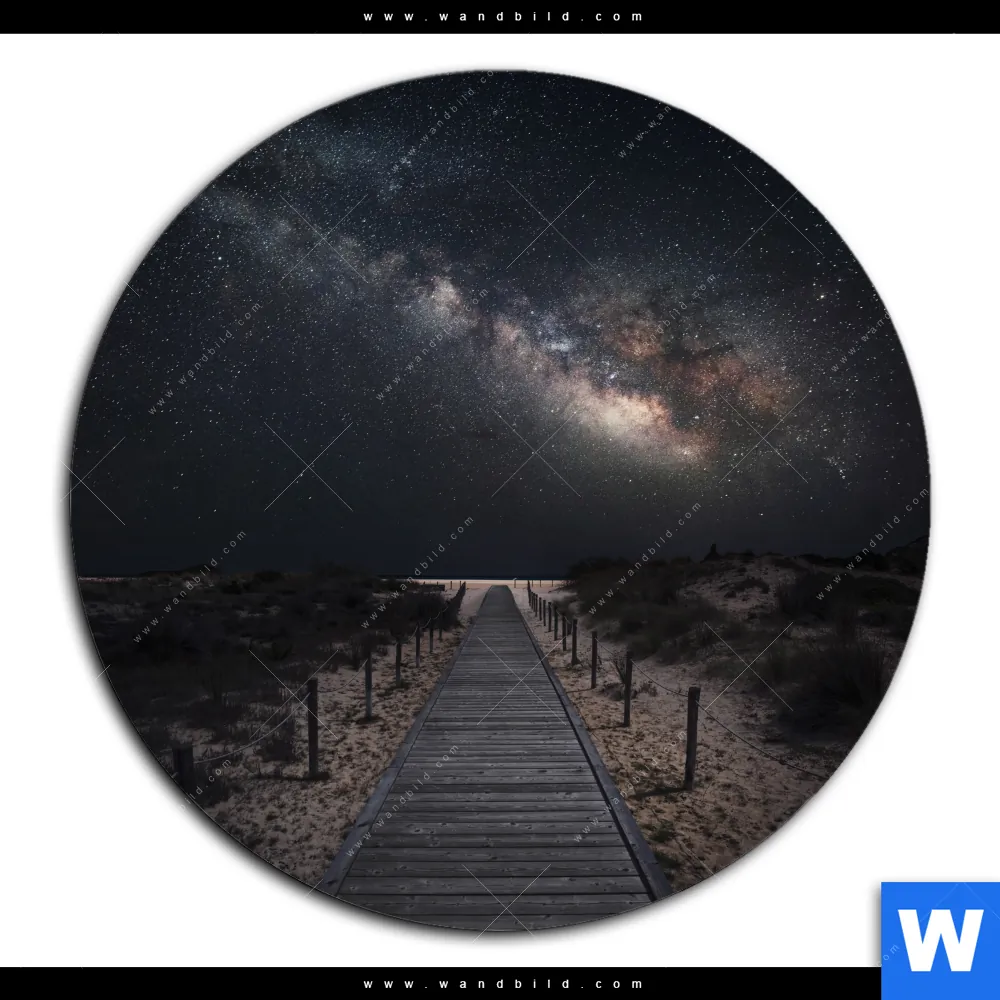 Alu-Dibond Bild | Milchstraße über einem Holzweg | Rund