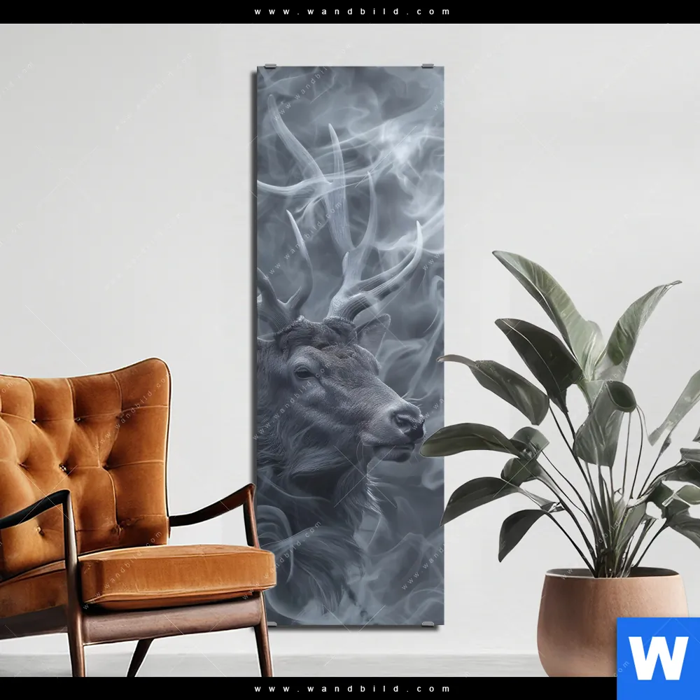 Alu-Dibond Bild | Mystischer Hirsch im Nebel | Schmal