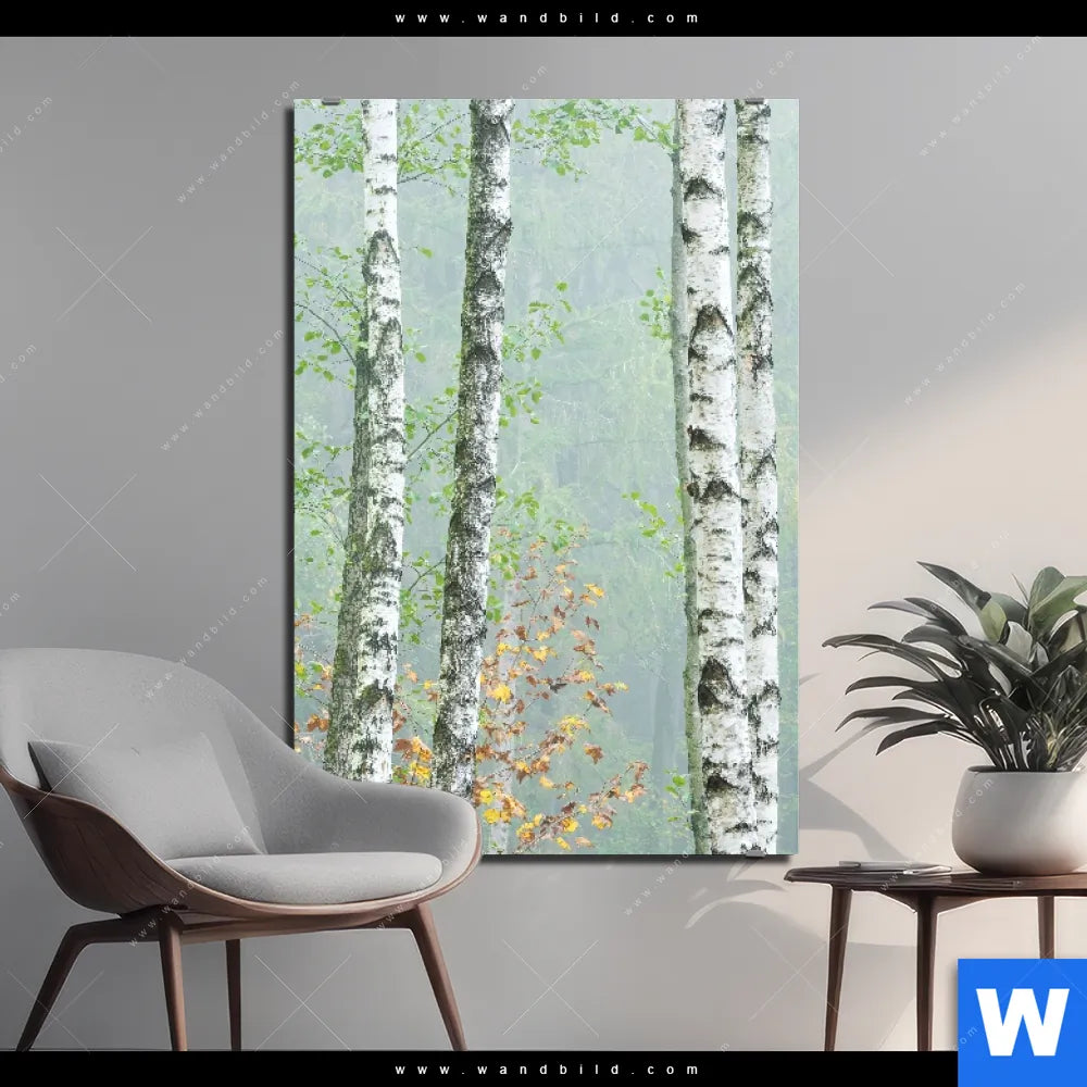 Alu-Dibond Bild | Nebliger Birkenwald | Hochformat