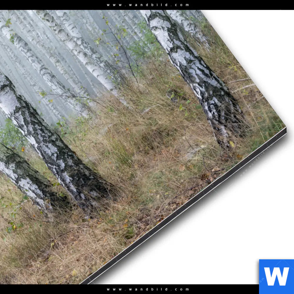 Alu-Dibond Bild | Nebliger Morgen im Birkenwald | Quadrat