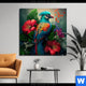 Alu-Dibond Bild | Papagei und tropischer Hibiskus | Panorama