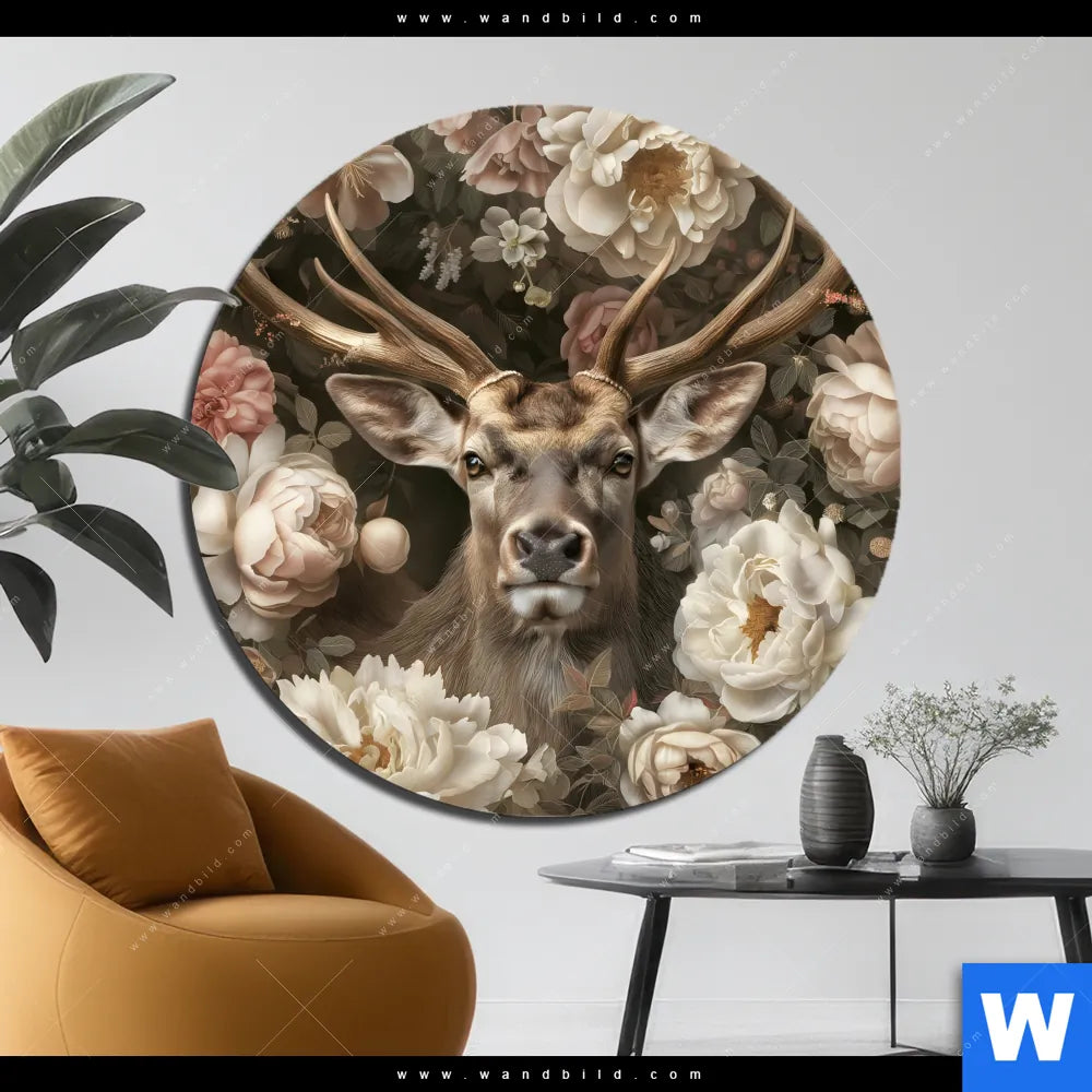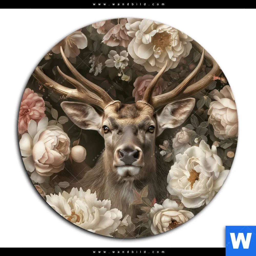 Alu-Dibond Bild | Romantischer Hirsch mit Blumen | Rund