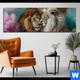 Alu-Dibond Bild | Sanfte Löwenmomente in buntem Nebel | Hochformat
