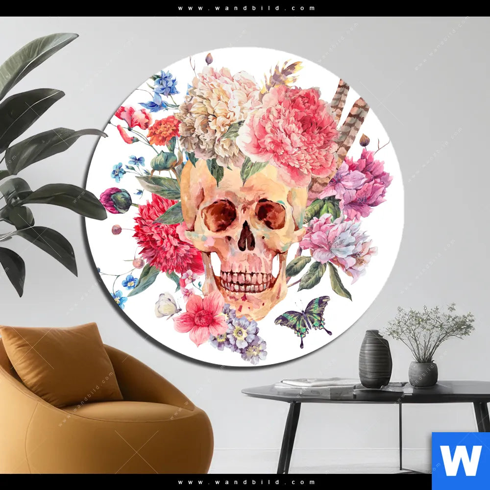 Alu-Dibond Bild | Schädel im Boho Stil | Rund