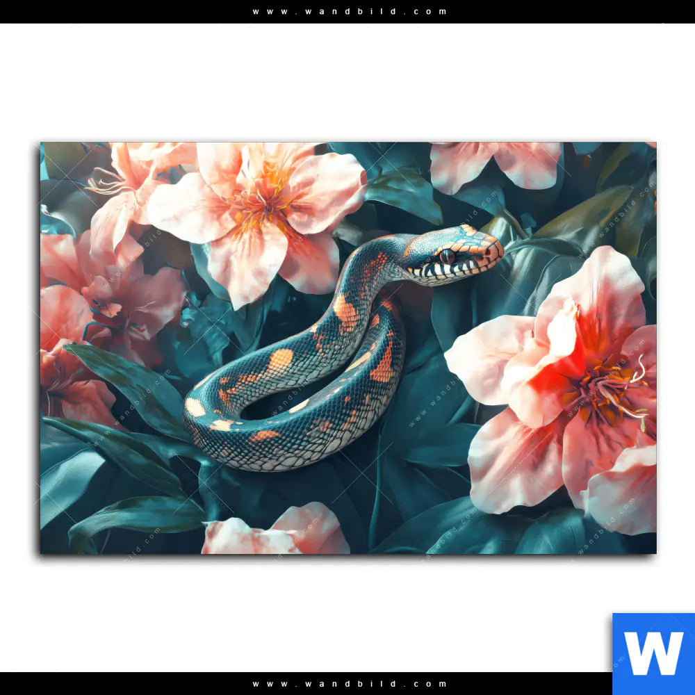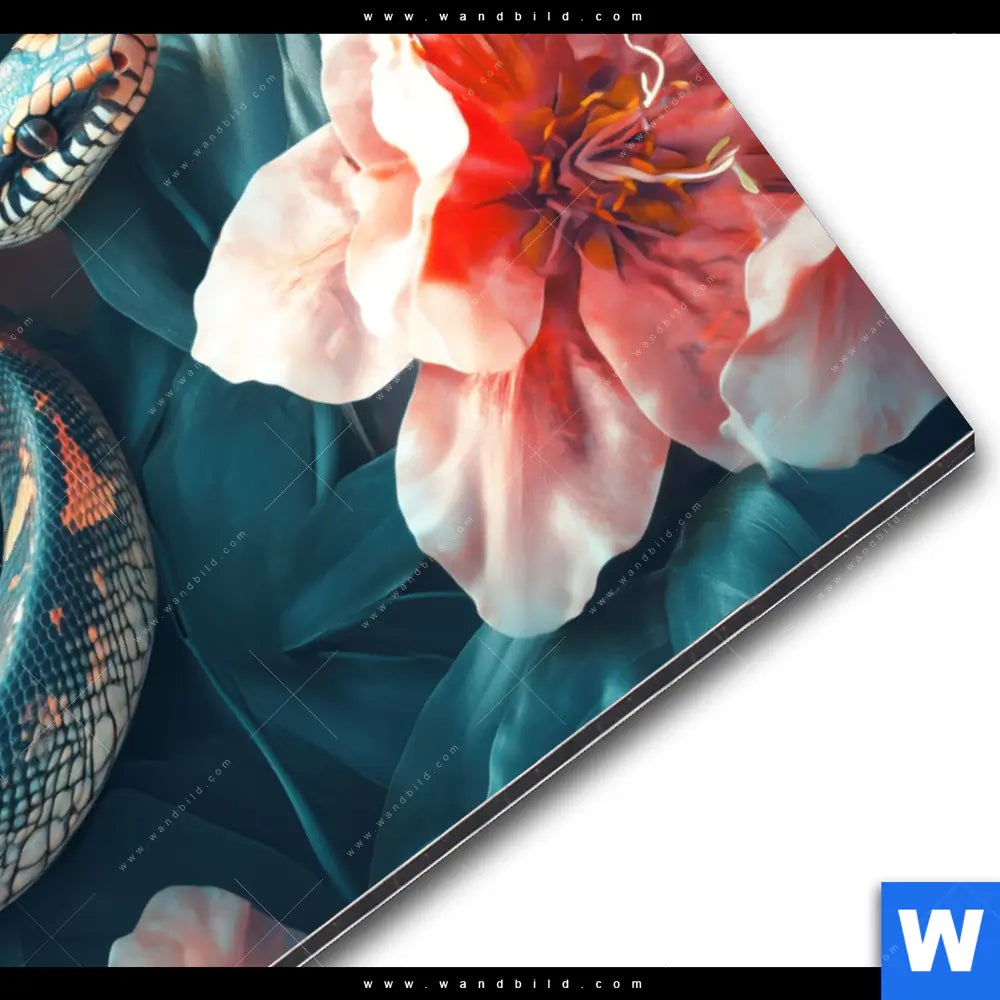 Alu-Dibond Bild | Schlange zwischen großen Blüten | Querformat
