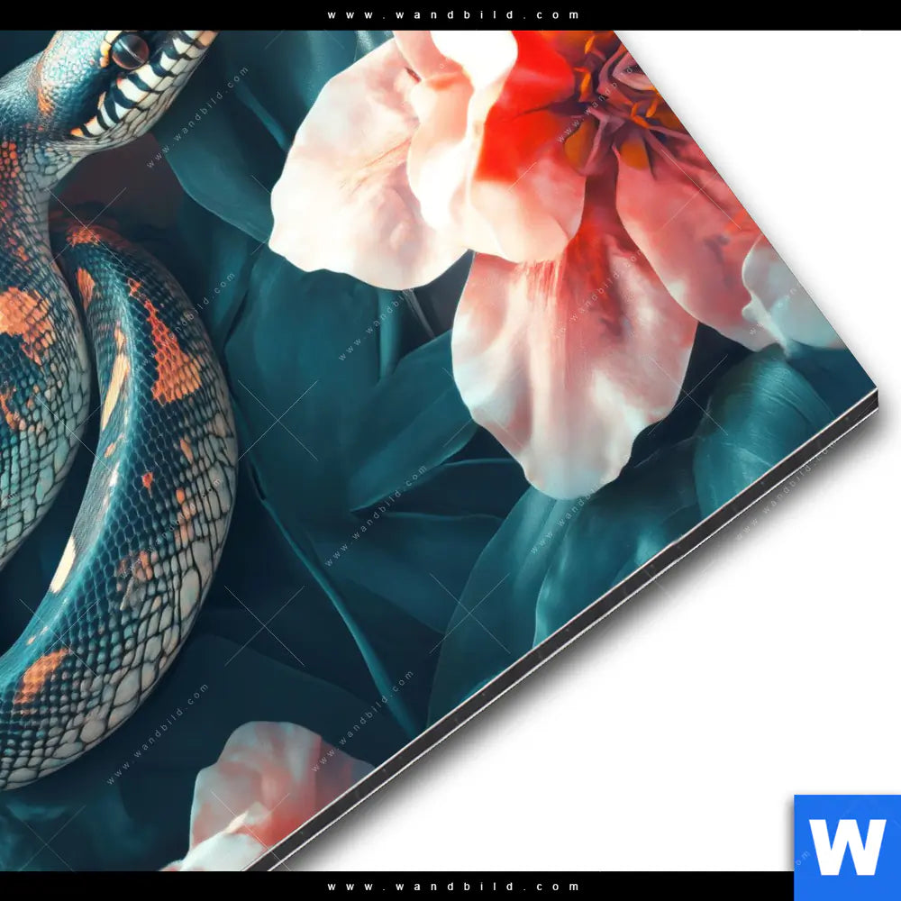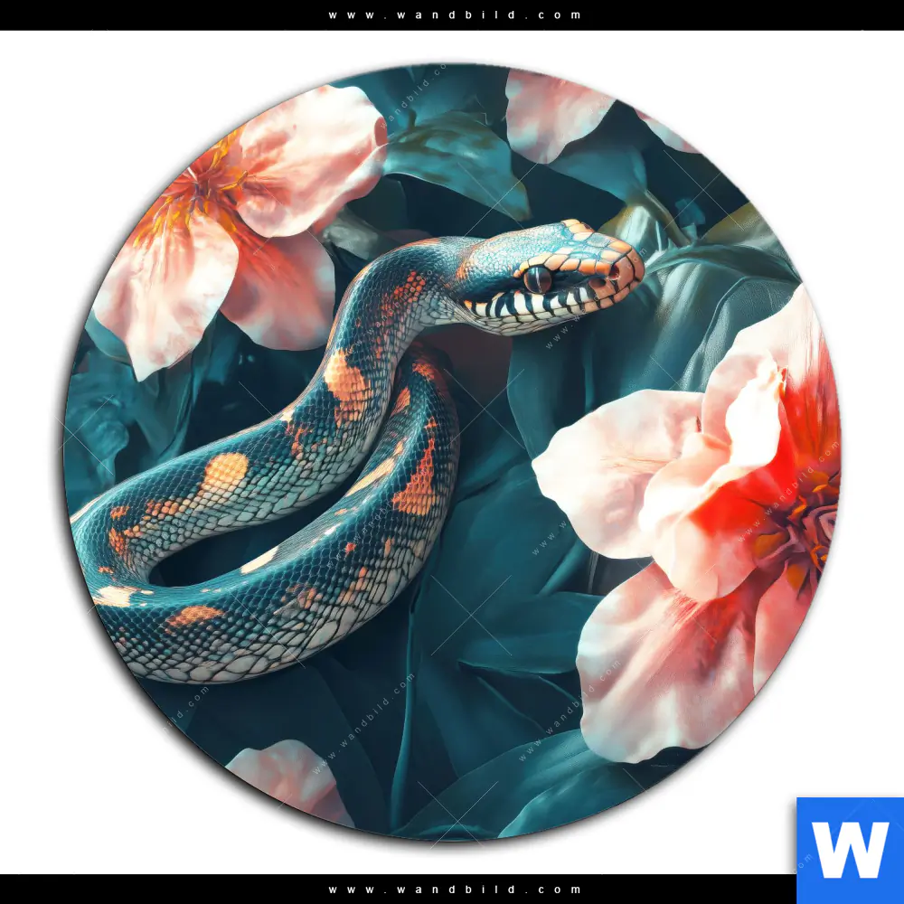 Alu-Dibond Bild | Schlange zwischen großen Blüten | Rund