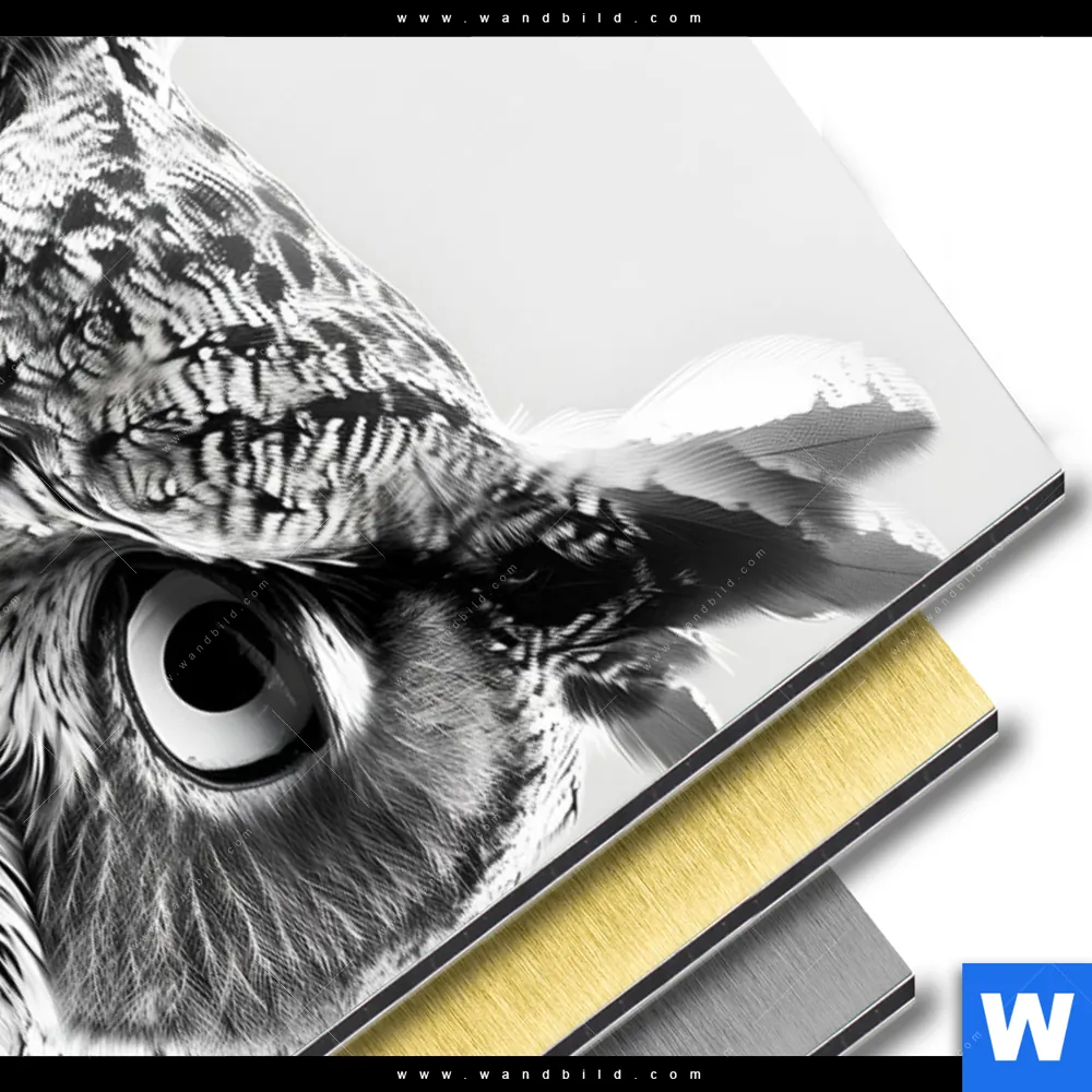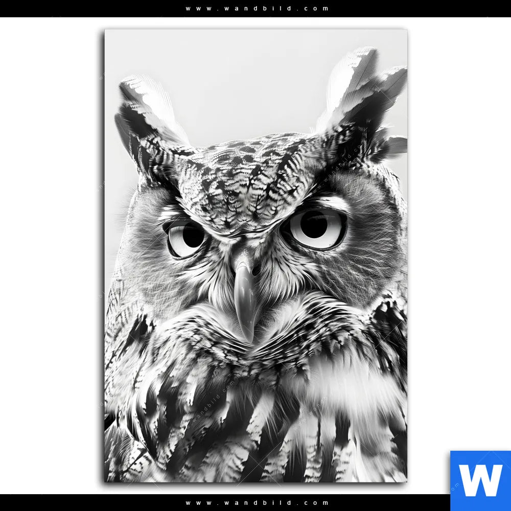 Alu-Dibond Bild | Schwarz-Weiß Eulenportrait | Hochformat