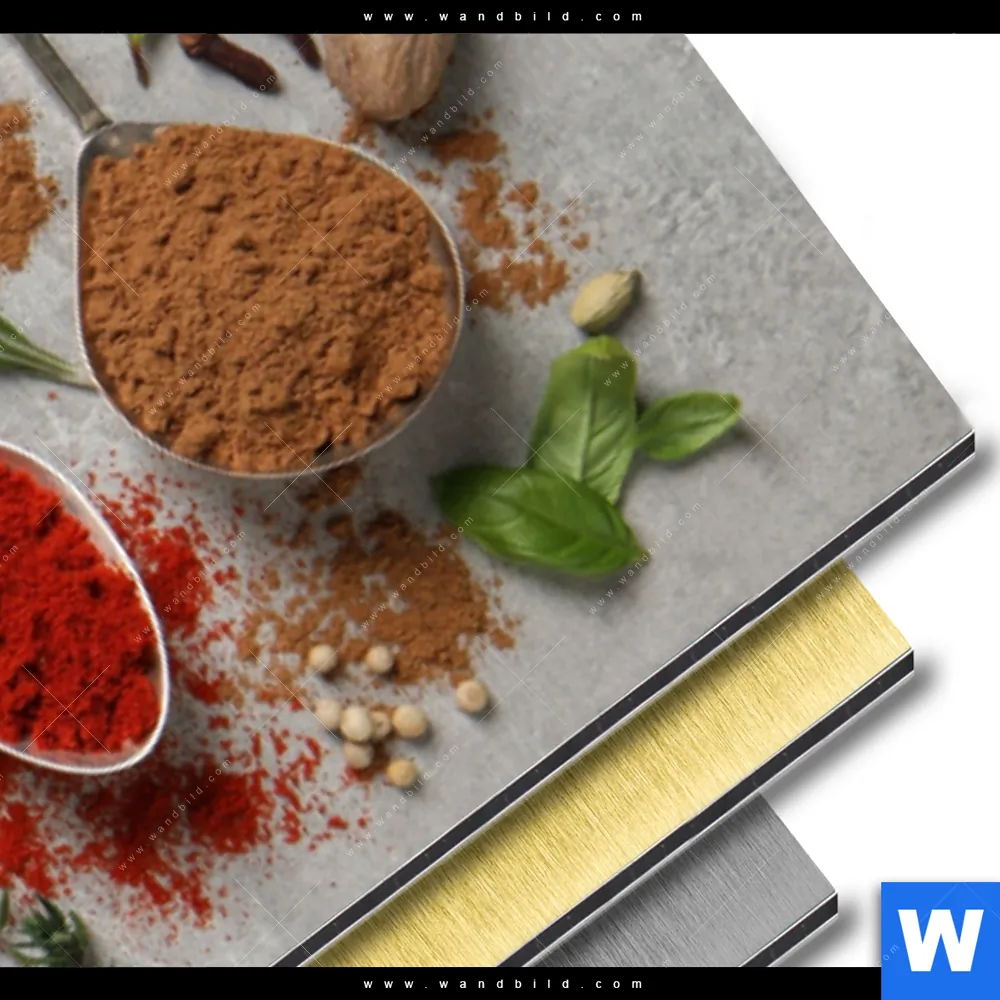 Alu-Dibond Bild | Silberlöffel mit Gewürzen | Panorama