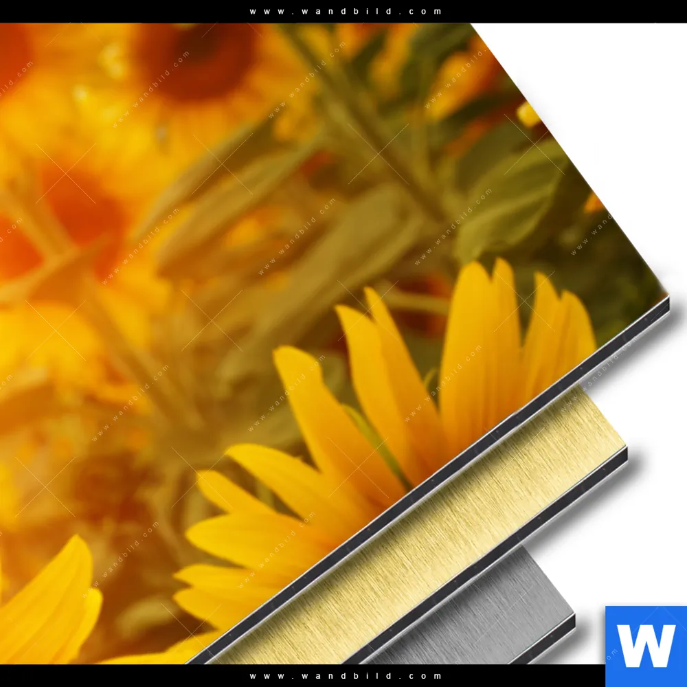 Alu-Dibond Bild | Sonnenblumen im Abendlicht | Panorama
