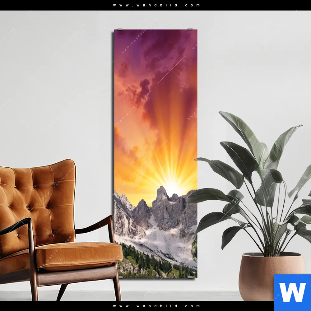 Alu-Dibond Bild | Sonnenuntergang in den Bergen | Schmal
