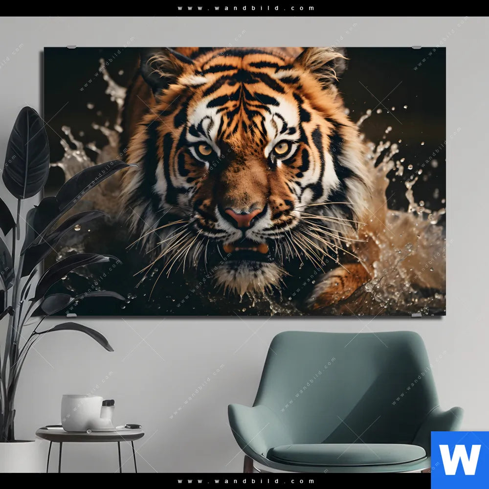 Alu-Dibond Bild | Tiger im Wasser | Querformat