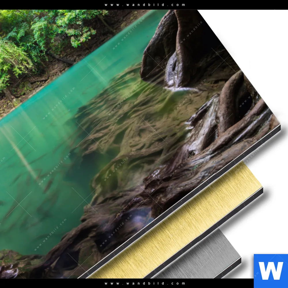Alu-Dibond Bild | Wald & Wasserfall No. 4 | Querformat