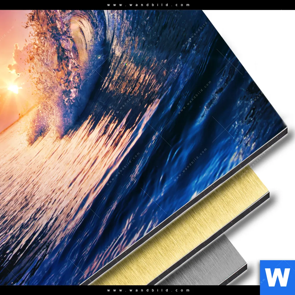 Alu-Dibond Bild | Welle im Sonnenuntergang | Quadrat