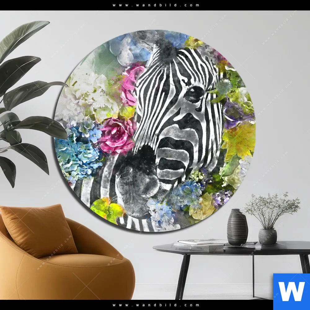 Alu-Dibond Bild | Zebra & Blumen | Rund