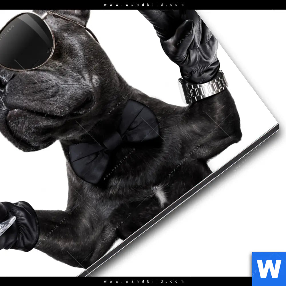 Alu-Dibond Bild | Bulldogge mit Martini | Quadrat