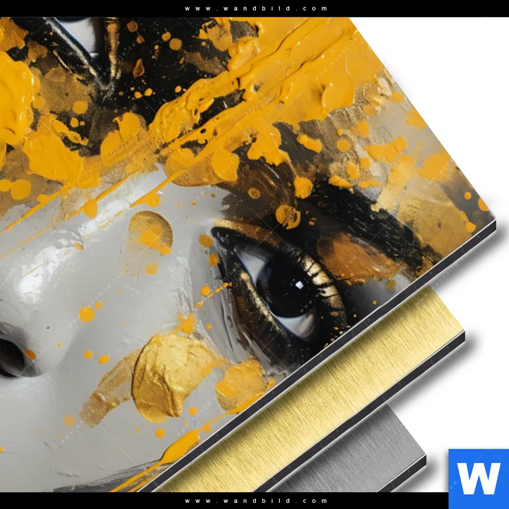 Alu-Dibond Bild | Frau mit Goldfarbe | Hochformat