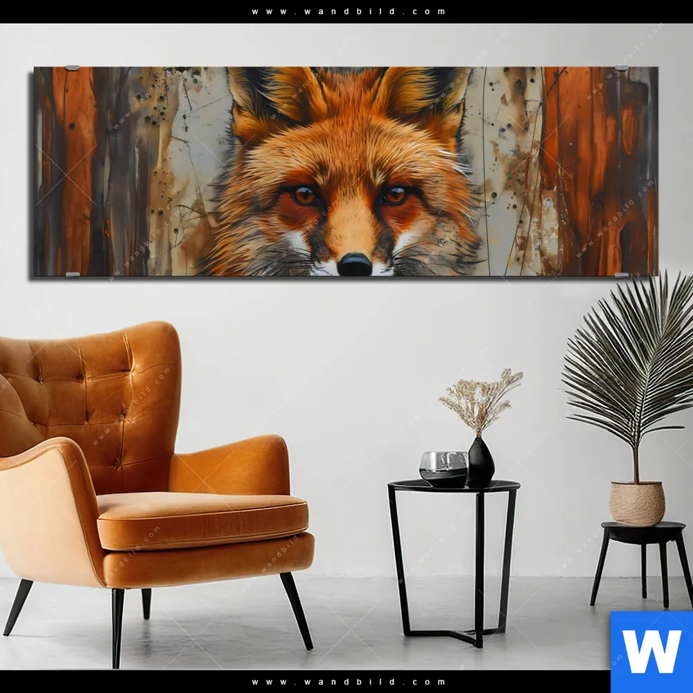 Alu-Dibond Bild | Fuchs - Grunge Stil | Panorama