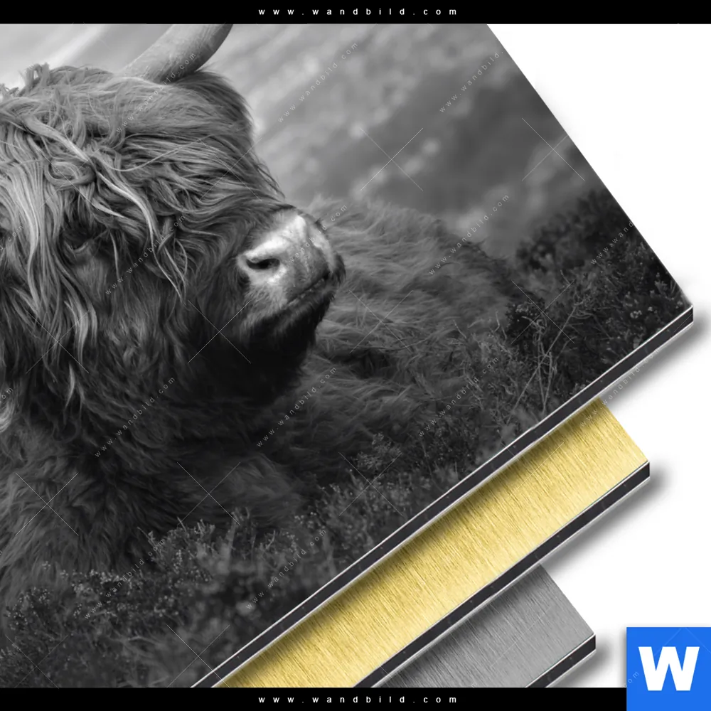 Alu-Dibond Bild | Hochland-Rind Schwarz-Weiß No. 2 | Rund