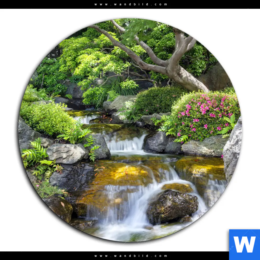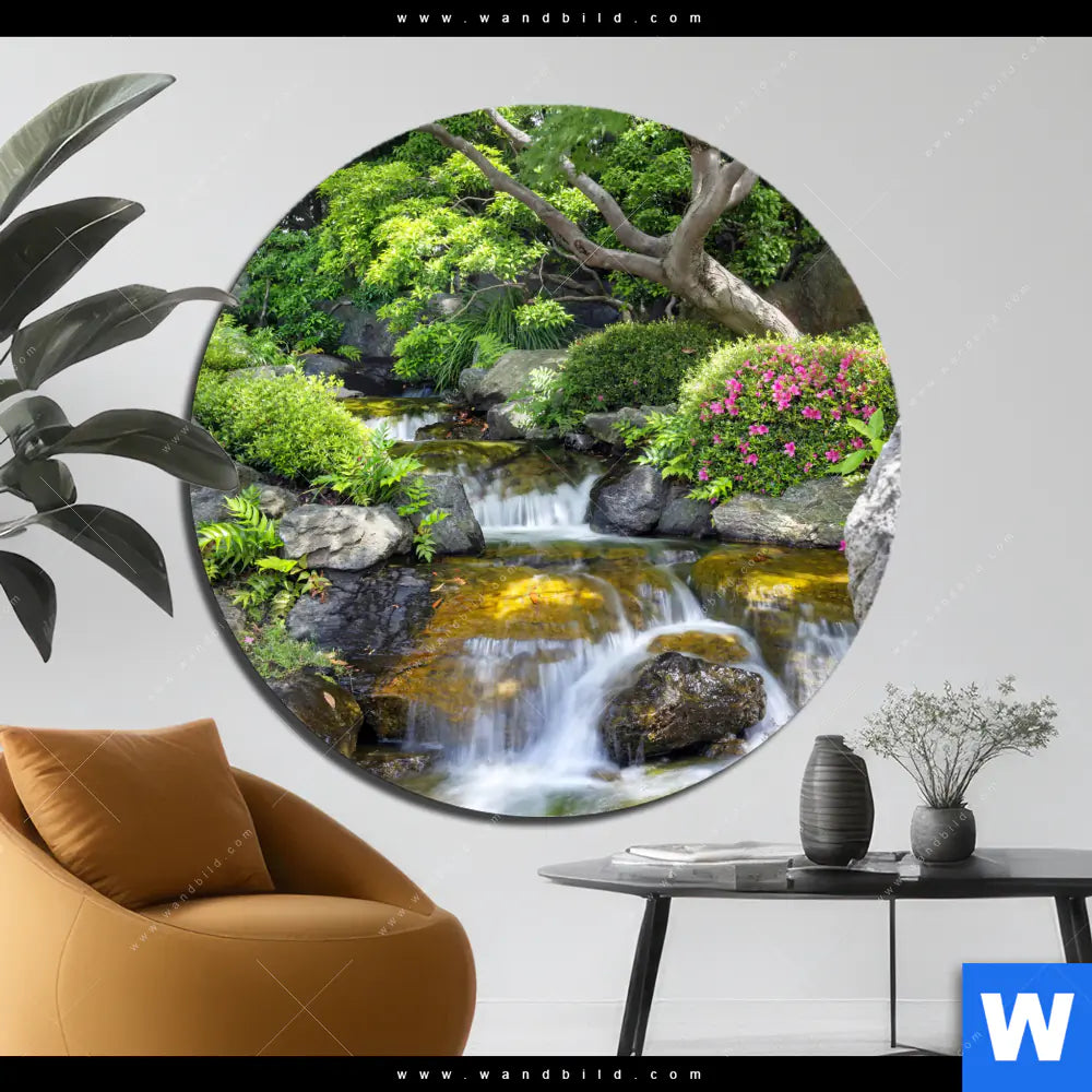 Alu-Dibond Bild | Japanischer Garten mit Wasserlauf | Rund