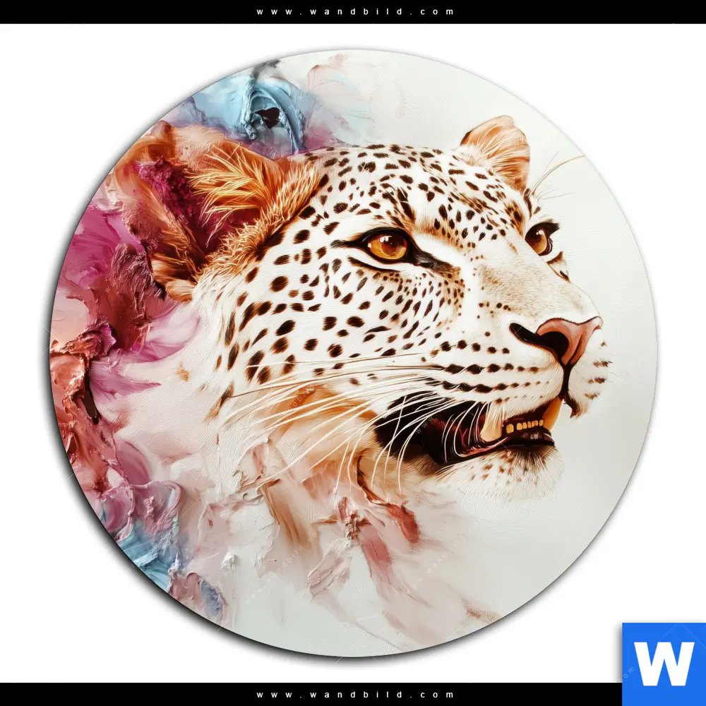 Alu-Dibond Bild | Leopard in Farbexplosion | Rund