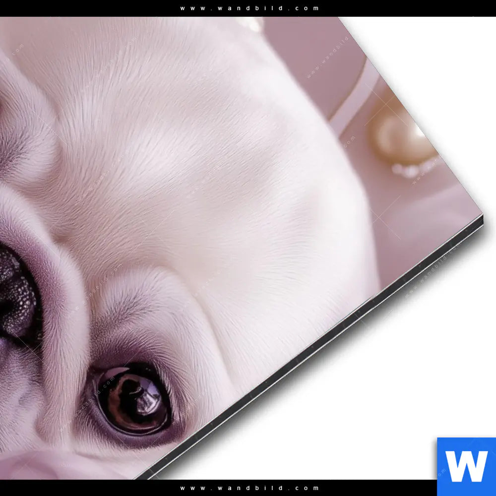 Alu-Dibond Bild | Mops im Blütenmeer | Hochformat