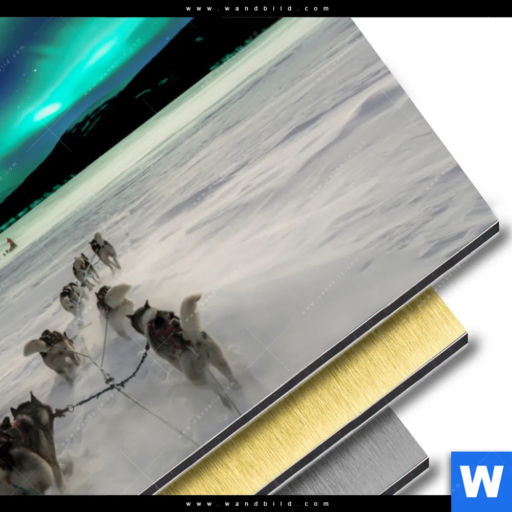 Alu-Dibond Bild | Nordlichter und Schlittenhunde | Querformat