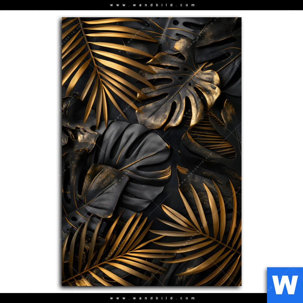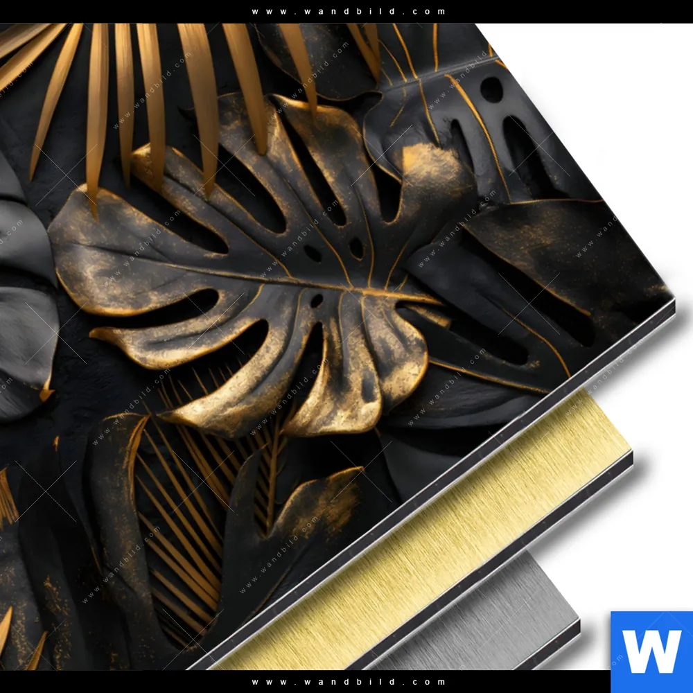 Alu-Dibond Bild | Palmenblätter Schwarz Gold | Hochformat