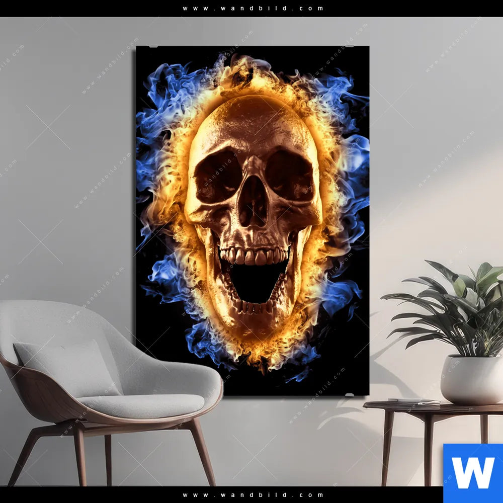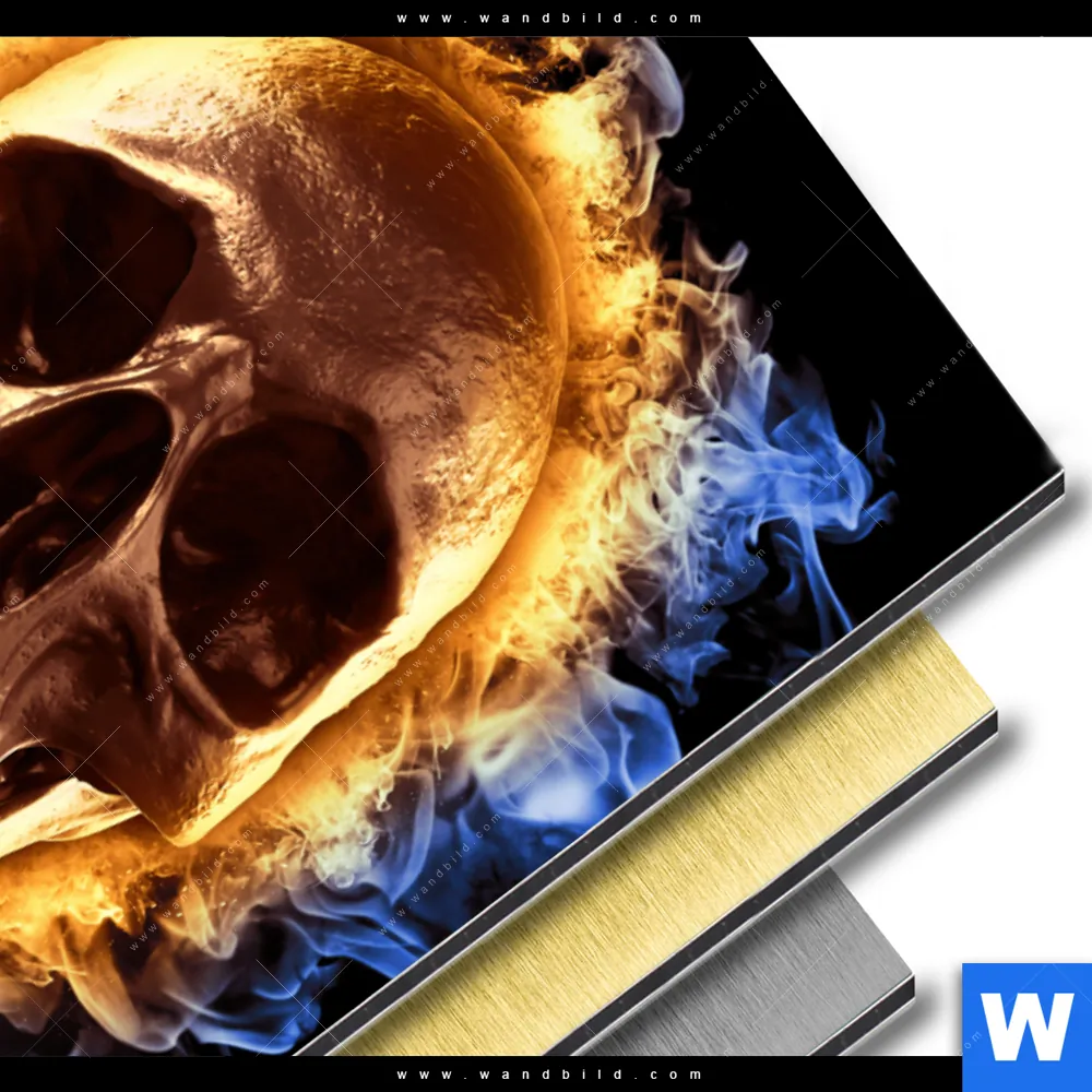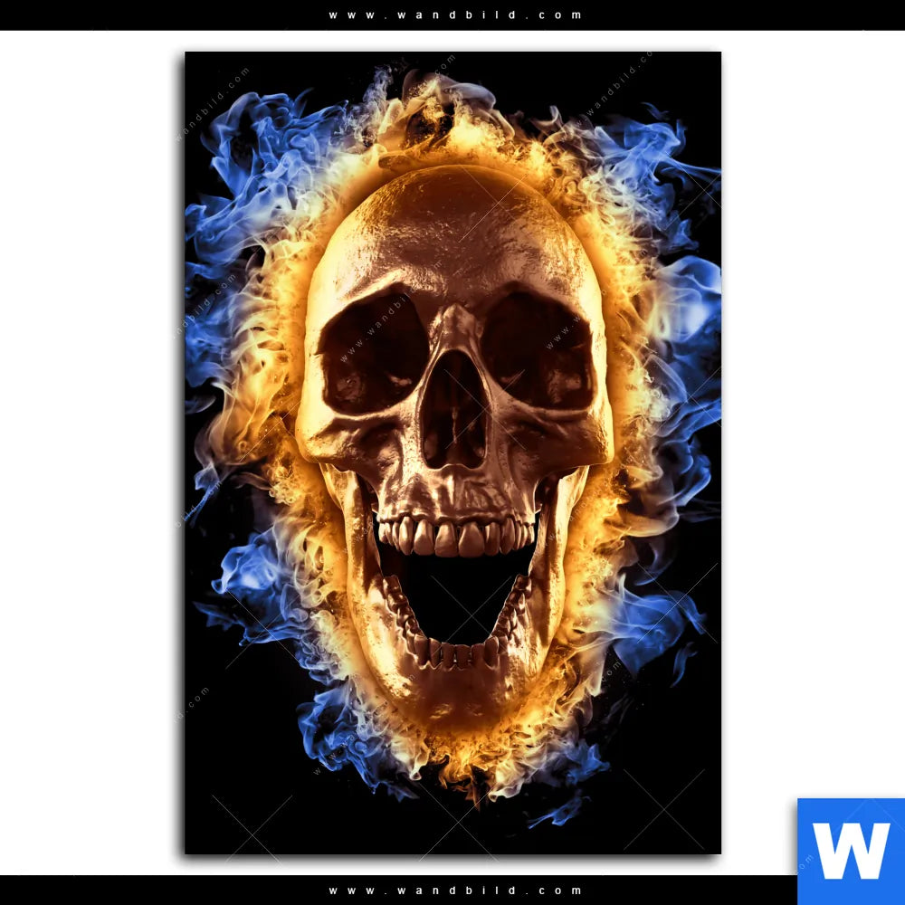 Alu-Dibond Bild | Schädel in Flammen | Hochformat