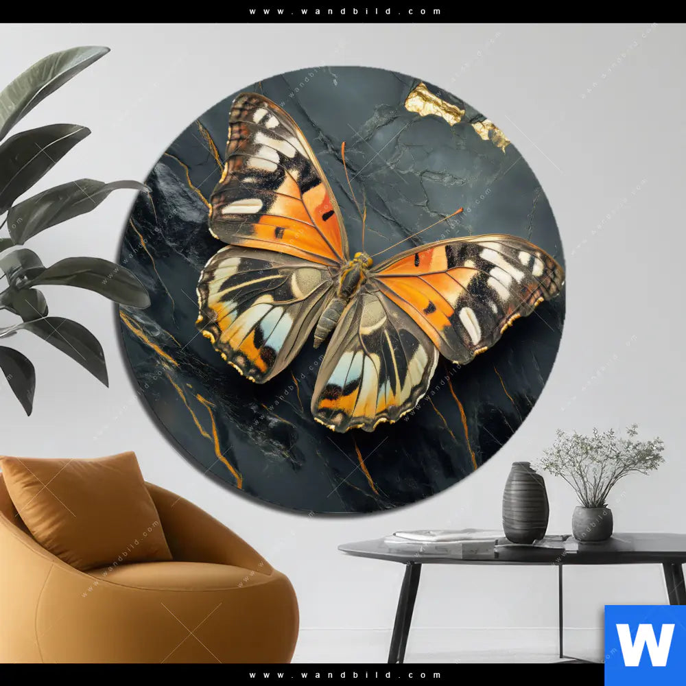 Alu-Dibond Bild | Schmetterling auf Marmor | Rund