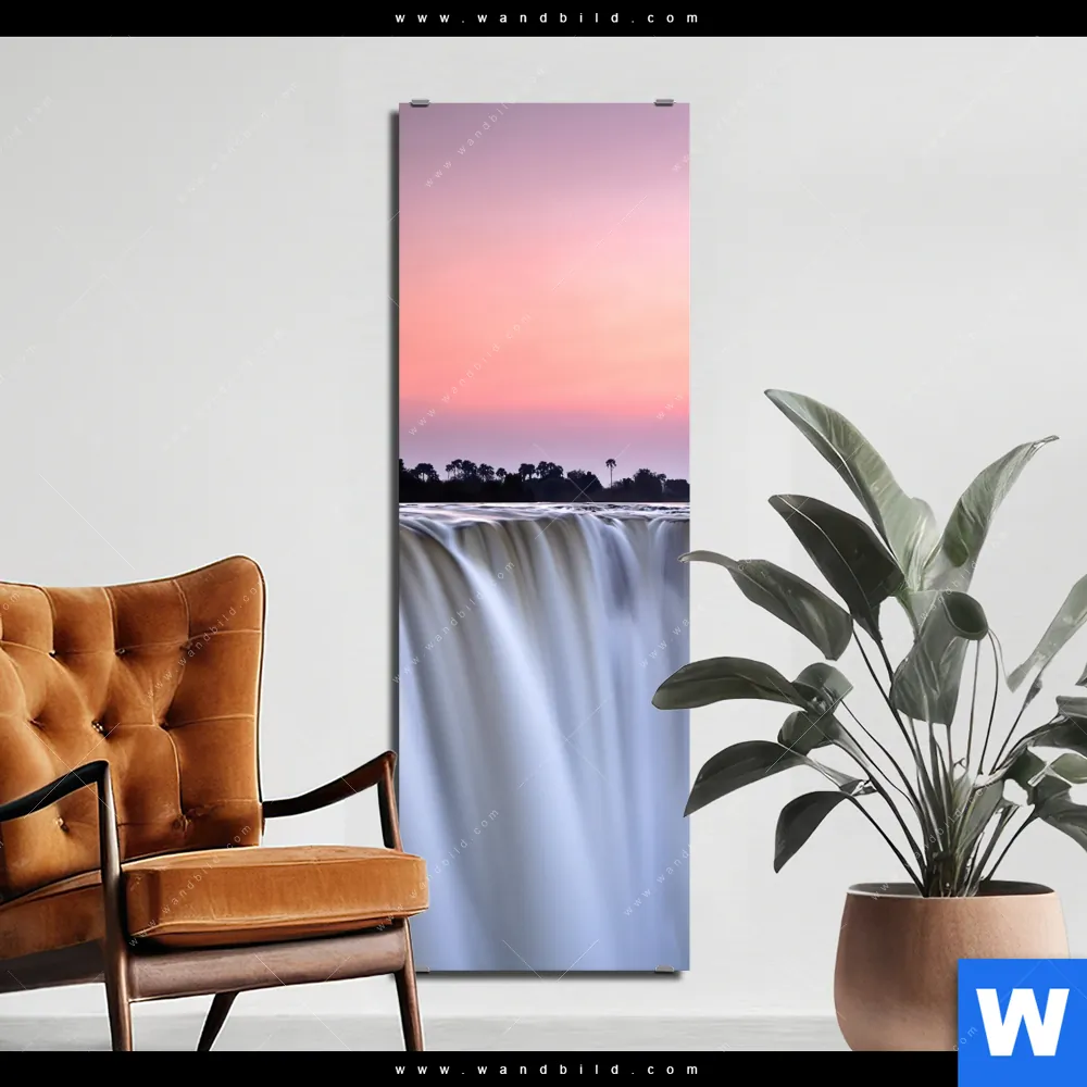 Alu-Dibond Bild | Wasserfall bei Abendröte | Schmal