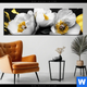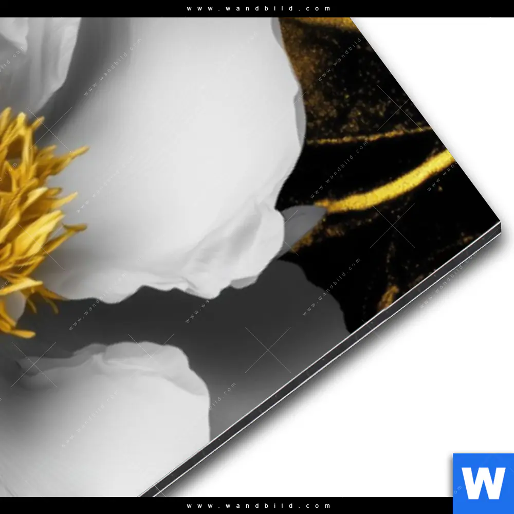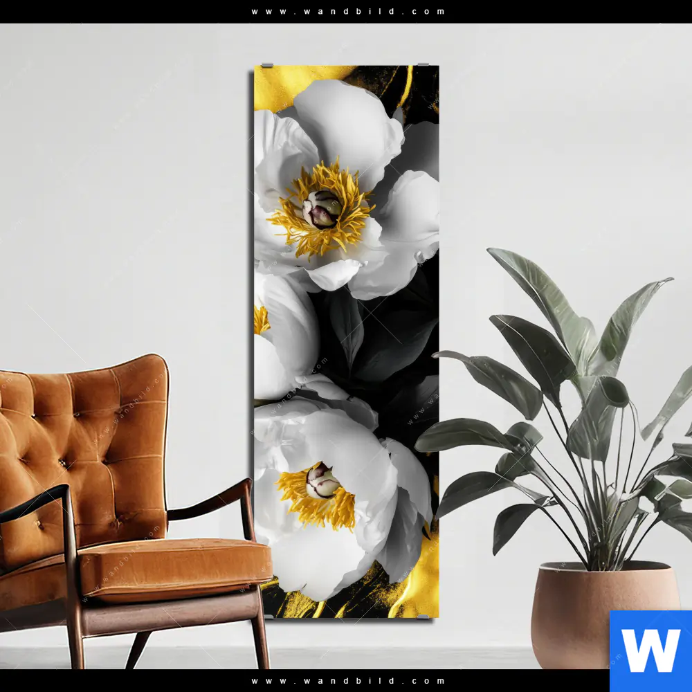 Alu-Dibond Bild | Weiße Blumen mit Gold | Schmal