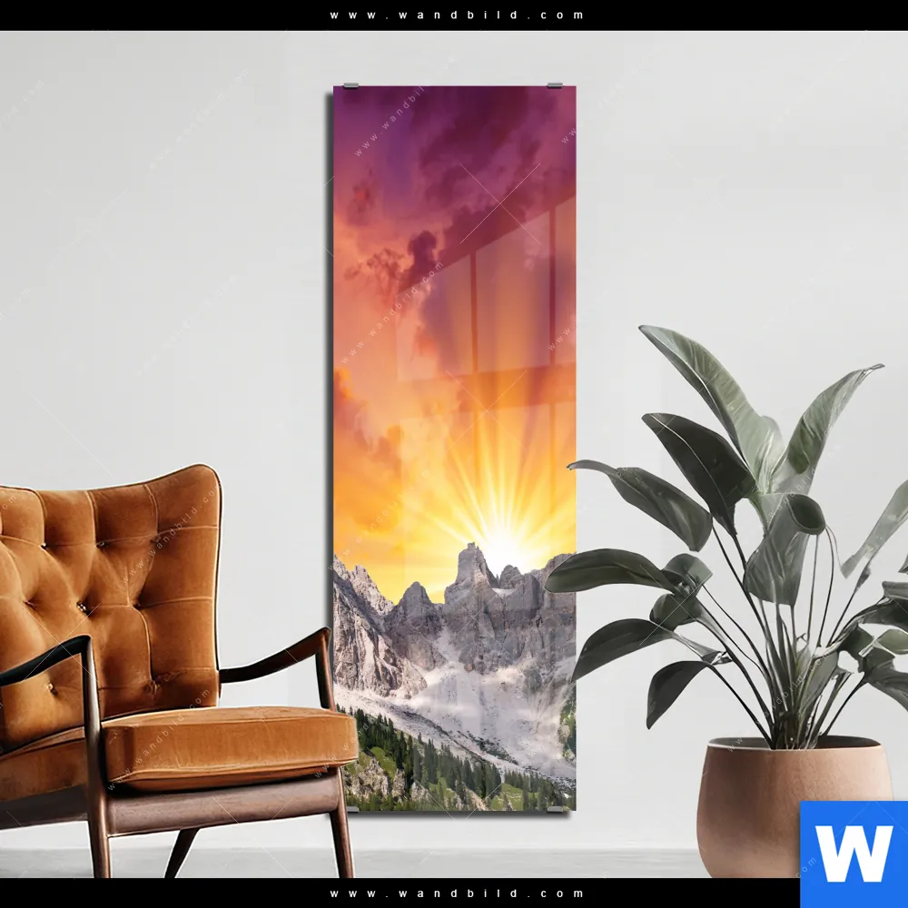 Acrylglasbild | Sonnenuntergang in den Bergen | Schmal