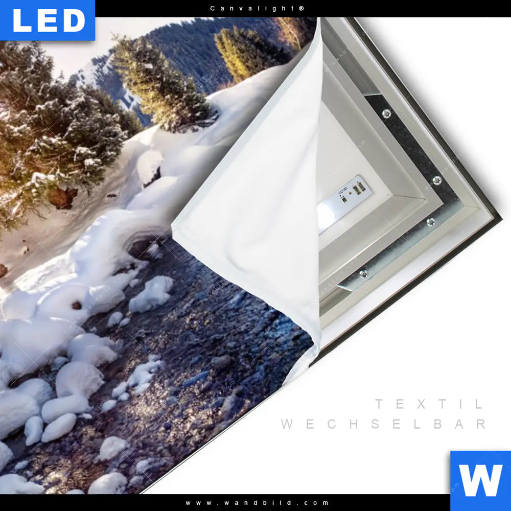 LED-Textilrahmen-Bild mit austauschbarem Landschaften, Winter Textil-Druck (Wechselbild)