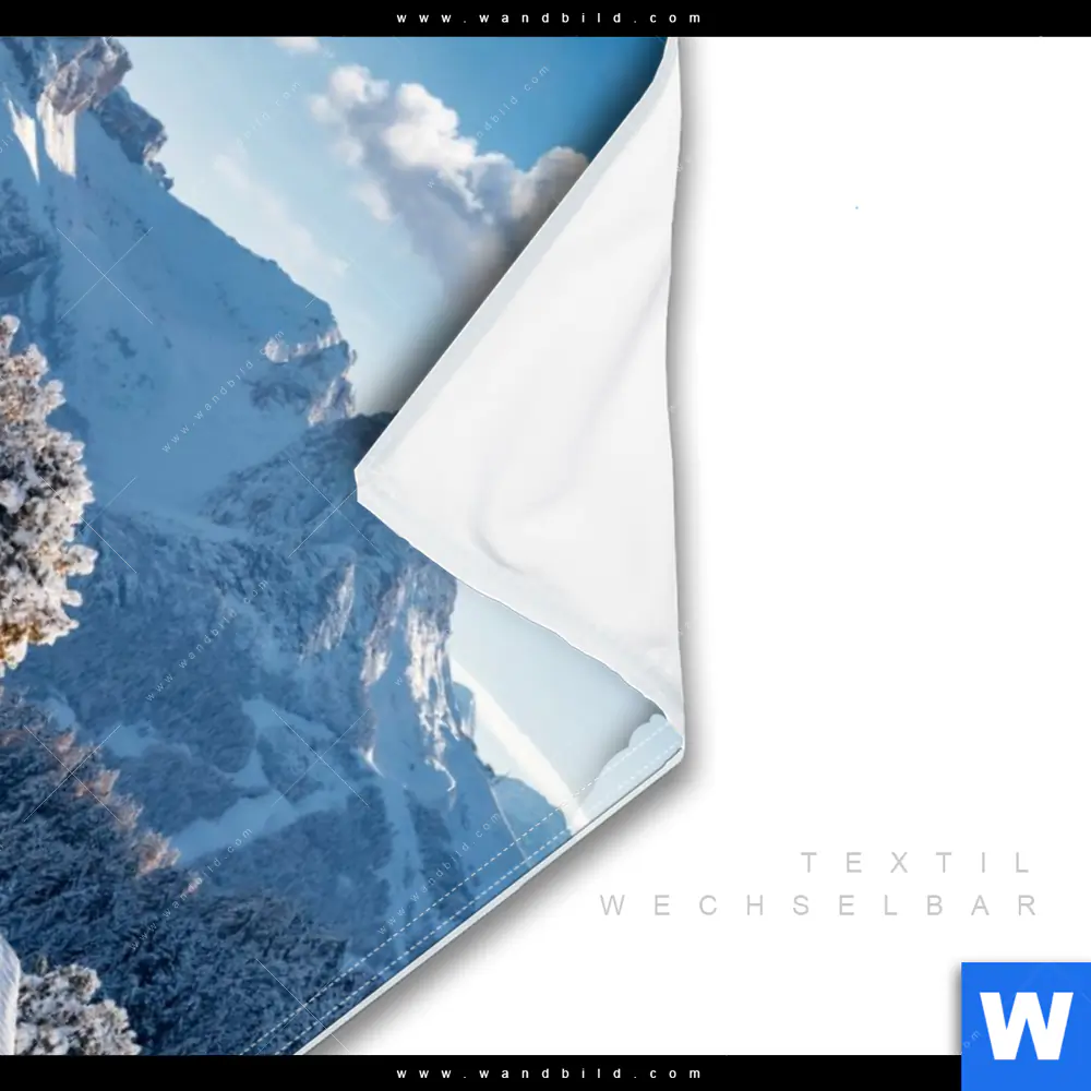 Wechselmotiv Textil | Winteridylle in den Bergen | Hochformat