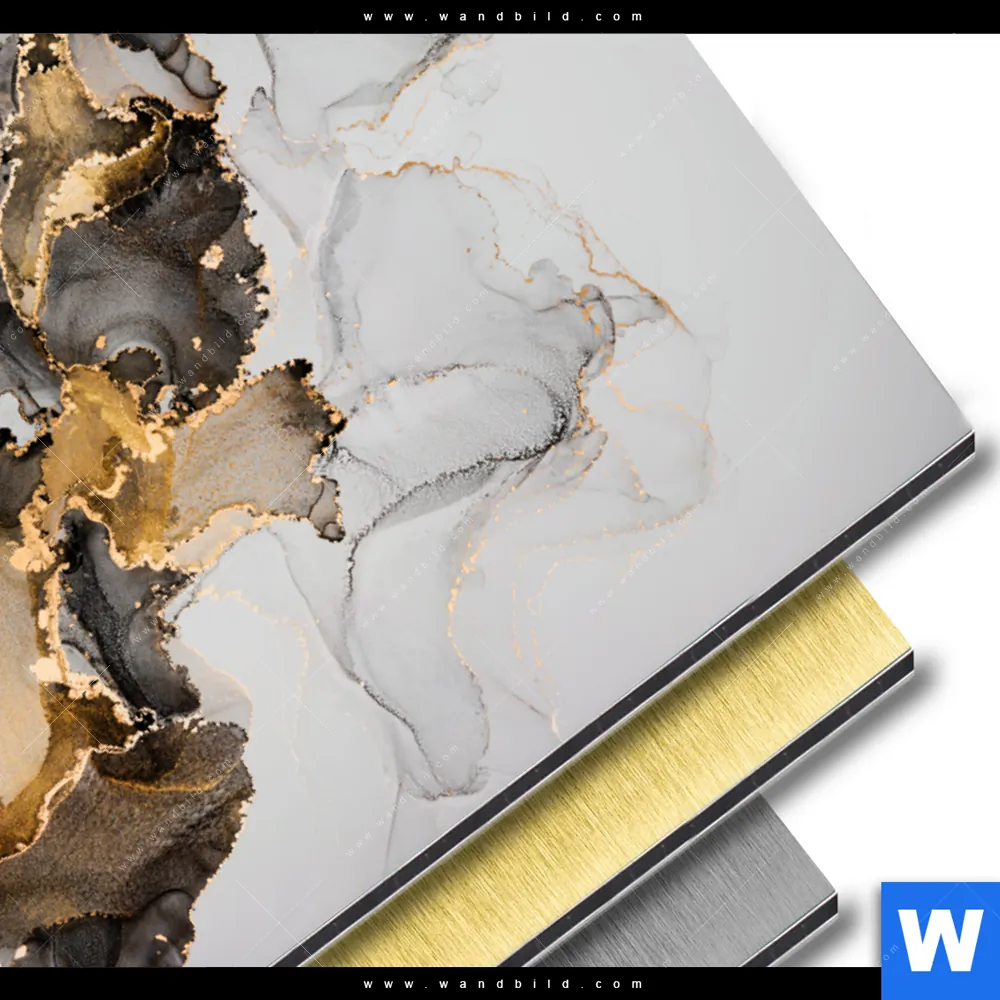 Aluminiumbild gebürstet | Fluid Art Gold | Hochformat