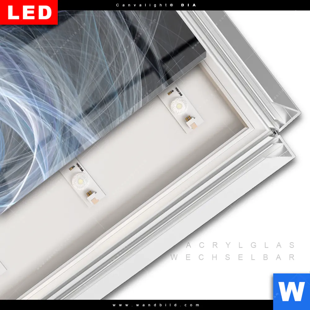 LED-Glasbild mit austauschbarem Acrylglas-Druck (Wechselbild)
